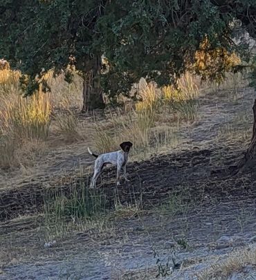 Rez is a medium size framed dog that is extremely athletic, very biddable, good nose and has been pointing since he was 8 weeks old.
